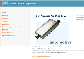 美国联合碳化物公司(Union Carbide)是美国的一化工企业,创办于1898年,总部位于休斯顿。联合碳化物公司于1917年取得乙烯制造的专利后逐渐兴起并在全球扩张,1984年印度博帕尔事件使联合碳...