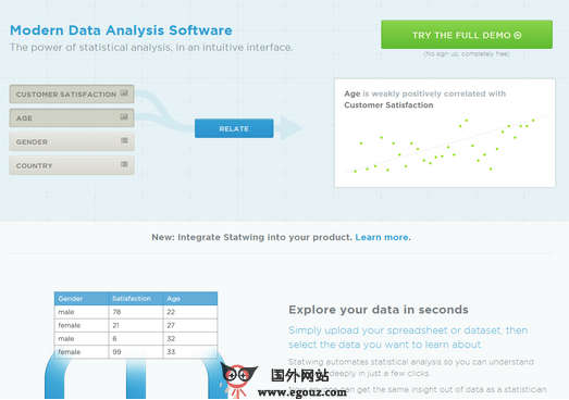 Statwing:在线产品统计分析工具是一个统计产品与服务解决方案的在线工具, 在使用体验上就像是图形界面对于命令行界面一样,非常简单易用。它让普通用户能以可视化操作就完成统计汇总和各种相关分析、假设检验,它还可将统计分析结果以通俗易懂的描述语言体现出来。SPSS(Statistical Product and Service Solutions),统计产品与服务解决方案软件。最初软件全称为社会科学统计软件包...
