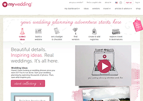 我的婚礼(Mywedding.com)是美国著名的婚庆策划网站,主要为顾客提供最全面的婚礼指导服务,包括婚礼摄影师、婚宴用品、婚礼场地、婚庆蛋糕定制、婚纱定制、婚庆方案、酒席筹办、鲜花礼...