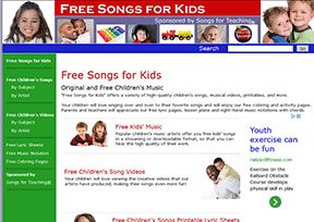 儿童歌曲网(Free Songs for Kids)是美国一个专门为儿童提供音乐和歌曲信息的网站,主要内容包括免费在线试听、下载、歌曲信息、视频、乐谱等。...