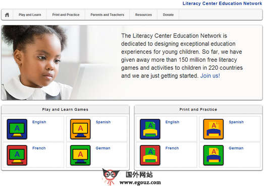 LiteracyCenter:在线幼儿教育学习平台是一个专门为幼儿设计的项目,用于学龄前儿童的互动式学习,通过独特的寓教于乐方式,帮助幼儿掌握母语和其他语言,通过免费的教育游戏、活动来提供幼儿的语言表达能力。到目前为止该平台已经发布了150多万的免费识字游戏,在220个国家里得到很好的应用,支持英语、法语、德语、西班牙语;有研究报名当父母、老师和孩子一起玩耍学习...