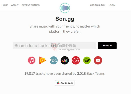 Songg 是一个支持搜索苹果音乐、Spotify、Google音乐、Deezer、Bandcamp、Lastfm等多网站音乐源的站点,并提供一个唯一的URL链接,帮助用户把音乐分享给其他好友收听,无论用户使用什么流媒体服务,都可以收听。搜索引擎" alt="Songg"多平台音乐分享搜索引擎" height="684" width="600"/Songg 的出现是基于人们喜欢分享音乐,但是很多用户使用的音乐服务不同,不能无缝地共享音乐,例如你有1...