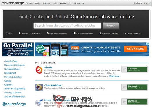 SourceForge:全球开源软件开发平台又称SF.net,是开源软件开发者进行开发管理的集中式场所,也是全球最大开源软件开发平台和仓库。SourceForge平台超过23万的软件项目已经登记使用超过200万注册用户的服务,使SourceForge.net开放源码的工具和网络应用的最大集合。提供帮助人们健全最棒的资料,并与全球观众分享免费服务。...