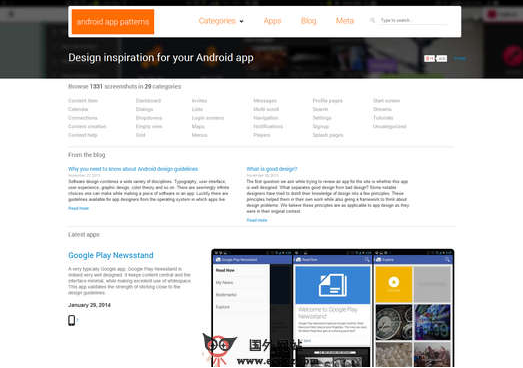 AndroidAppPatterns:安卓界面设计资源库是一个致力于安卓手机系统界面设计的资源平台,帮助程序设计师从排版、用户界面、平面设计、色彩理论等方面来设计优秀的应用程序,指导设计人员完成自己的设计作品。Android App Patterns 上有超过1130张手机和平板的屏幕截图。你可以向下滚动浏览更多,该网站上发布的左右作品都是经过精心筛选的,审核的第一要素就是这个程序是否是精心...