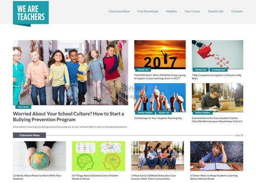 我们是教师(We Are Teachers)是国外的一个教育工作者在线社区,致力于为最艰难、最有成就感的工作者提供丰富的教学资源,激励教师和帮助他们分享成功的实践课堂的想法、课堂理念、免费资源、教师生活等。...