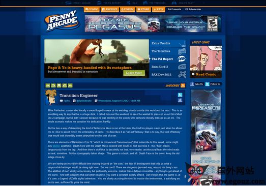 Penny Arcade:在线漫画创作平台是一个在线游戏漫画资讯网站,也是互联网上最流行和历史最悠久的网络游戏漫画网站,旨在关注视频游戏和视频游戏文化等。Penny Arcade由杰里Holkins和迈克Krahulik共同创办于1998年。每周一,周三和周五定期更新网站的漫画内容,且网站的博客与网站漫画更新是同步的,一旦有新的漫画发布,博客上就会报道。Penny Arcade拥有350万位读者,除了漫画之外...