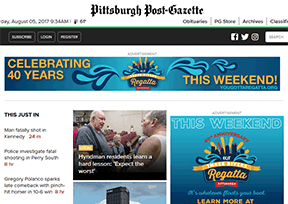 匹兹堡邮报(Pittsburgh Post-Gazette)是美国匹兹堡地区的一份日报,创刊于1786年,日均发行量越17万份。匹兹堡邮报官网发布各类新闻资讯。...
