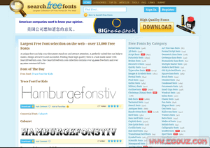 SearchFreeFonts.com是一个非常优秀的字体网站,收集了超过13000种免费英文字体,并提供给用户免费下载。用户可以使用其站内搜索引擎搜索自己想要寻找的字体,或者选择分类进行挑选,下载之前可以预览字体效果!SearchFreeFonts.com的编辑们收录字体的时候都很认真,每一种字体都进行了分类和添加标签,并为字体提供了缩略图预览。而在下载之前,用户可以输入一些文本进行预览字...