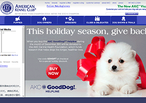 美国养犬俱乐部(AMERICAN KENNEL CLUB;简称:AKC)是全球最重要的纯种犬组织,于1884年成立,致力于纯种犬的繁殖、养殖、注册、研究、饲养和展示,使纯种犬的事业蓬勃壮大。2012年9月12日,A...