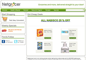 网络杂货店(NetGrocer)是美国一个以食品为主的杂货网店,于1999年创建,提供送货上门服务,旨在让消费者足不出户就能买到日常所需的物品,具体包括一般食品、天然有机食品、特价食品、...