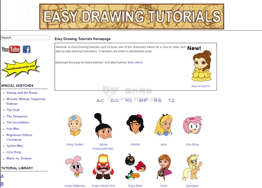 简笔画视频教学网(Easy Drwaing Tutorials)是国外的一个简笔画教学网站,教大家绘制简单的简笔动漫人物,每隔一周推出一个新的人物,基本都是大家常见热门的,也有一些经典的动漫人物,按照人物的姓名首字母排序方便查阅。名词介绍:"简笔画是通过目识、心记、手写等活动,提取客观形象最典型、最突出的主要特点,以平面化、程式化的形式和简洁洗练的笔法,表现出既有概...