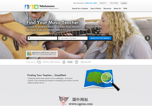 TakeLessons:在线音乐教学服务平台是一个帮助想学乐器、音乐艺术的人找到当地合适老师、为梦想付诸行动的网站,该网站采用O2O的电子商务模式来实现老师好学生之间的教学交易服务。让想学音乐的人在对的时间遇到对的老师。目前TakeLessons为3000个城市的学生提供了服务,课程类型包括各种乐器、声乐、表演等35种。它号称自己只与排名在前8%的音乐老师合作,在聘用之前这些音...