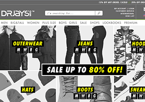 DrJays是美国最大的专营嘻哈服饰购物门户网站,于2000年创建,其位于纽约南布朗克斯的实体店于1975年便已经成立了。该购物网站提供了几乎全部品牌的嘻哈服饰,以前卫、年轻、潮流、时尚、...