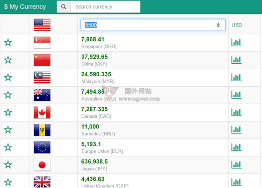 我的货币(My Currency)是一个在线世界各国货币汇率实时查询的网站,目前支持163个国家的货币汇率查询服务,该网站使用了雅虎汇率API,用户还可以查询不同国家的货币汇率趋势图,出国必备。使用方法:打开网站后会看到世界各国的国旗,因为支持163个国家,因此用户可以点击国旗进行切换,也可以输入国家名称来切换,选择好国家后输入数值会展示所有国家的货币汇率兑换价...