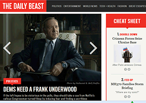 每日野兽(The Daily Beast)是美国著名的新闻评论网站,于2008年10月6日创建。2010年11月12日,该网站与美国《新闻周刊》合并,更名为新闻周刊与每日野兽公司(The Newsweek Daily Beast Company)。...