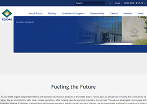 Tesoro公司(特索罗公司)是美国的一家石油公司,总部位于德克萨斯州圣安东尼奥市 (San Antonio)。Tesoro公司主要从事石油精炼和石油产品销售业务,在2013年 财富 世界500强排名中,排在第348位。...