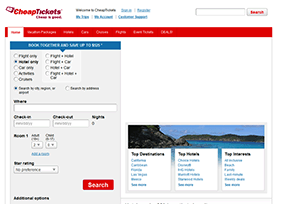 CheapTickets是美国著名的全球性在线旅游服务公司,主要为游客提供休闲度假资讯、旅游景点简介、旅游攻略、酒店预订、机票查询和预订、度假出租、度假套餐、邮轮服务等实用旅游资讯和服务...