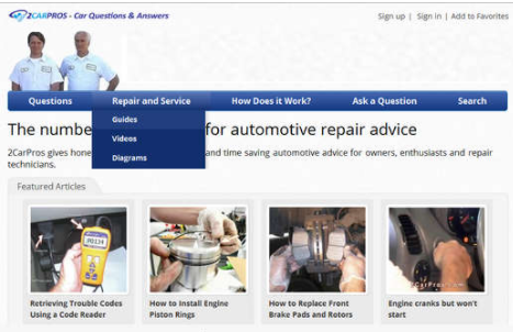 2CarPros:在线汽车维修问答平台是一个致力于汽车问答和汽车维修的平台,有专业的汽车维修团队于1999年创办,旨在帮助汽车爱好者和维修师们了解汽车,如何去节省资金来完成汽车的维修问题,在线解答车友们的疑问。...