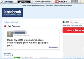 Lamebook是美国一个趣闻博客。网站的内容(包括文字和图片)过于搞笑,但充满人性。虽然 Facebook 与Lamebook不是同一重量级的社交网,但近日两者却上演了一出美国版的3Q大战。据悉, Facebook 起...