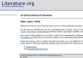 在线文学图书馆(Online Literature Library)是英国一个由文学爱好者创建的在线图书馆,汇集了完整未删减版的经典英文文学文档,其中就包含著名作家路易斯卡罗尔、勃朗特三姐妹、杰克伦敦、...