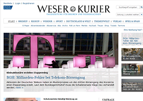 《威悉信使报》(Weser-Kurier)德国西北部重要的地方性报纸,于1945年9月19日创刊,总部设在不来梅市,主要在不来梅市及其周边的萨克森州地区发行。该网站为其官方网站,主要提供当地新闻...