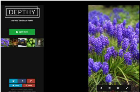 Depthy:在线景深照3D模拟工具是一个让模糊虚化效果的美丽深入你的相片的工具,拍照或者在相册里选择一张相片,轻触你想保留清晰的区域,然后这个应用就会自动帮你虚化其他区域,就是这么简单。...