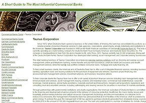 Taunus Corporation是德国 德意志银行 在北美的一个分部,于1999成立,主要为美国的州立机构、公司、政府、私人企业和机构提供金融服务。从1872 起,德意志银行在美国开设分部,此银行更加巩固...