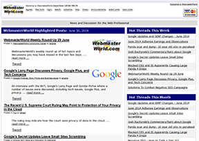 网站管理员世界(WebmasterWorld.com)是加拿大一个综合性网络技术论坛,以搜索引擎营销及SEO为主,汇集了来自世界各地的SEO人员,以便及时掌握和了解与搜索引擎相关的最新资讯,以及国外SE...