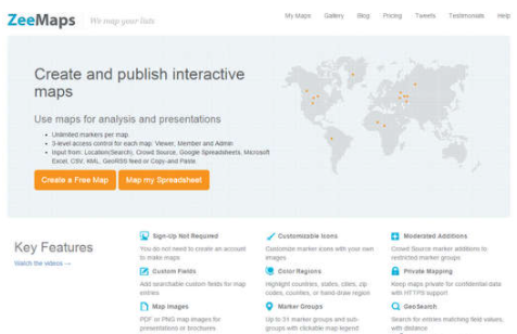 ZeeMaps 是一个支持帮助开发者创建并发布交互式地图的平台,允许添加多媒体到地图标记,因此可以展示地图上不同位置的照片、视频或声音,支持导入入Google或Excel表格的数据,支持众包式地图。...