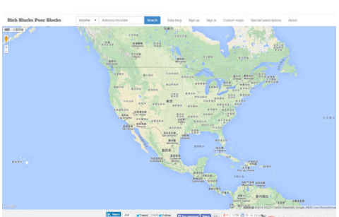 Rich Blocks Poor Blocks 网站是一个通过地图来展示美国各大州、县的人口、收入、教育程度、租金、购房成本等数据的网站,如果你知识看数据的话根本看不出来什么,这种采用可视化大数据的方式真正胜过千言万语。...