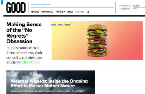 Good Magazine 杂志是一本致力于全球公民阅读的杂志,涵盖了商业、环境、政治、艺术、设计、文化、科技、教育、城市问题和最新的故事,帮助用户从大局观和大数据的角度来解读世界和人类每天发生的事情。...