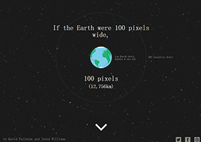 假如地球的直径是100像素,那么火星距离我们有多远?Distance to Mars便是这样一个网站,你可以通过滚动你的鼠标滚轮来感受这个距离,当然,网站的作者也设计了一个人性化的按钮,只需要点...