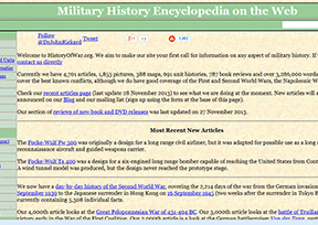 该网站是英国著名的军事历史百科全书(Military History Encyclopedia),主要提供世界战争、区域冲突、重大战役、军事思想史、军事学术史、军事技术、战争武器等内容,给人类提供前车之鉴和启...