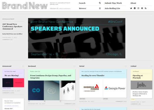 Brand New 是设计公司 Under Consideration 的一个部门,侧重于企业和品牌标识工作,并设有一个巨大的包装设计灵感库。这里不仅仅是一个作品展示网站,或者是以华丽的图像作为特色的网站, 这里绝大部分的设计作品都进行了详细的审查,有专家提供的意见,可以知道每个作品的怎么做和为什么这么做。...
