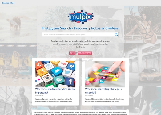 Mulpix 是一个专门搜索Instagram网站图片和视频的搜索引擎网站,通过搜索多个主题标签的杠杆作用来找到Instagram网站更多精准的图片资源,让你搜索Instagram图片更加简单和方便。...