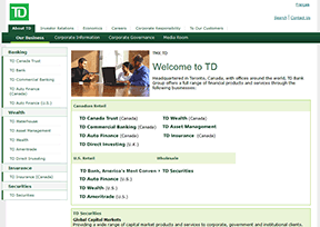 多伦多道明银行集团(Toronto-Dominion Bank Group;简称TD Bank Group )加拿大第二大银行,北美第六大银行,于1855年成立,在 《财富》 世界500强中位居第404位;在2014年 《福布斯》 全球企业2000强中位...