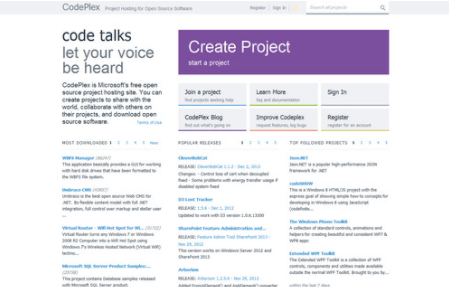CodePlex:微软开源代码管理服务平台是是微软的开源工程网站,涉及诸多微软最新技术的开源工程,同时你也可以建立并向世界展示自己的开源工程。CodePlex支持CodePlex账号及Microsoft Account(Windows Live ID)登录。...