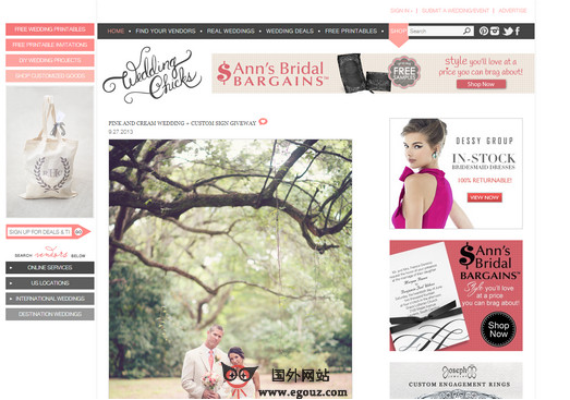 WeddingChicks:时尚婚礼资源分享博客是一个致力于分享婚礼的博客站点,传统的婚礼模式已经不适合追求时尚的年轻人士了,如何才能拥有一个更完美的婚礼呢?该博客就是介绍如何把婚礼策划的完美无缺。结婚需要很多东西,例如婚纱的选择、婚纱照怎么更有创意、婚纱照婚礼布置、婚宴酒店、婚纱礼服、结婚钻戒等婚礼等等,该博客介绍帮助那些要结婚的人士如何举办一个别有...