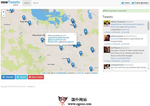 NowTweets:地图式Twitter实时新闻是一个利用地理位置来标记Twitter用户所发布的信息的站点,你可以通过地图来查看某个地区都有那些人在用Twitter,他们都发布的什么内容,这样你可以快速的了解当地的实时新闻和社交活动。Twitter对于国内用户来说都不会陌生,尤其是那些出国留学或者就业的人士来说都是必备的社交工具,如果你是去国外留学的话,想要了解某个地区的本土新闻或...
