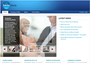 Fairfax Media是一个覆盖澳大利亚和信息兰的媒体集团,主要由澳洲部,新西兰部,和数码部构成。此外,该公司还出版区域报刊、财经杂志等,并通过澳大利亚的Fairfax Digital以及新西兰的stuff.c...