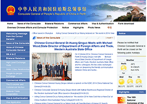 该网站为中国驻珀斯总领事馆(CONSULATE-GENERAL OF CHINA IN PERTH)的官方网站,主要提供总领馆简介、总领事专栏、领区概况、表格下载、领事证件、领事保护和协助、侨务信息、最新动态等。...