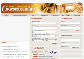 Courses.com.au是澳大利亚最大的短期培训课程查询网站,在这里你可以搜索到澳大利亚各个地区的超过10000种在线课程,包括语言学校、电脑课程、IT课程、美术班、音乐班、舞蹈班、瑜珈班、烹饪...