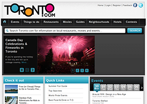 多伦多网(toronto.com)是加拿大著名的旅游资讯网站,主要提供加拿大旅游景点、休闲活动、旅游项目、电影、餐厅、节日活动列表、商业目录、娱乐资讯等,是玩转加拿大的首选网站。...
