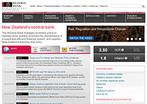 新西兰储备银行(Reserve Bank of New Zealand)即为新西兰中央银行,是新西兰唯一拥有的法定发钞权(发行新西兰元)的银行,于1934年成立,最初为民营银行;1936年国有化。该银行主要负责执行货...