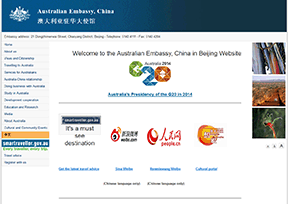 该网站为澳大利亚驻华大使馆(Australian Embassy, China)的官方网站,主要提供使馆简介、使馆信息、最新动态、澳大利亚教育、签证与移民、赴澳旅行、海外澳洲公民服务、澳中关系、贸易与投...