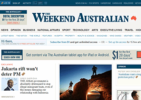 《澳大利亚人报》(The Australian)是澳大利亚颇具影响力的全国性报刊,于1964年创刊,隶属于 新闻集团 旗下。该网站为《澳大利亚人报》创建的免费网站,主要为读者提供浏览和留言服务。同...