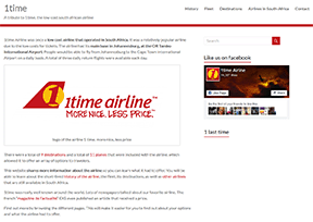 一时航空公司(1time Airline)是南非的一家廉价航空公司,成立于2004年,枢纽机场为奥利弗坦博国际机场,主要运营南非国内航线。...