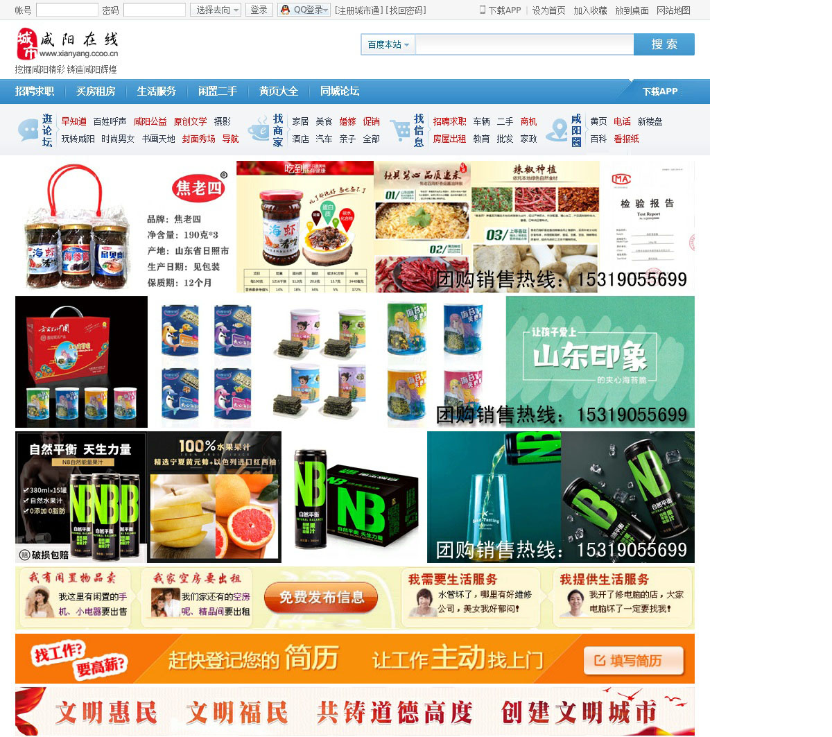 咸阳在线,咸阳综合信息门户,为您提供咸阳旅游特产、小吃美食、新闻热点、房产楼盘、招聘求职、家居建材、婚假影楼、论坛贴吧、商家企业黄页电话
