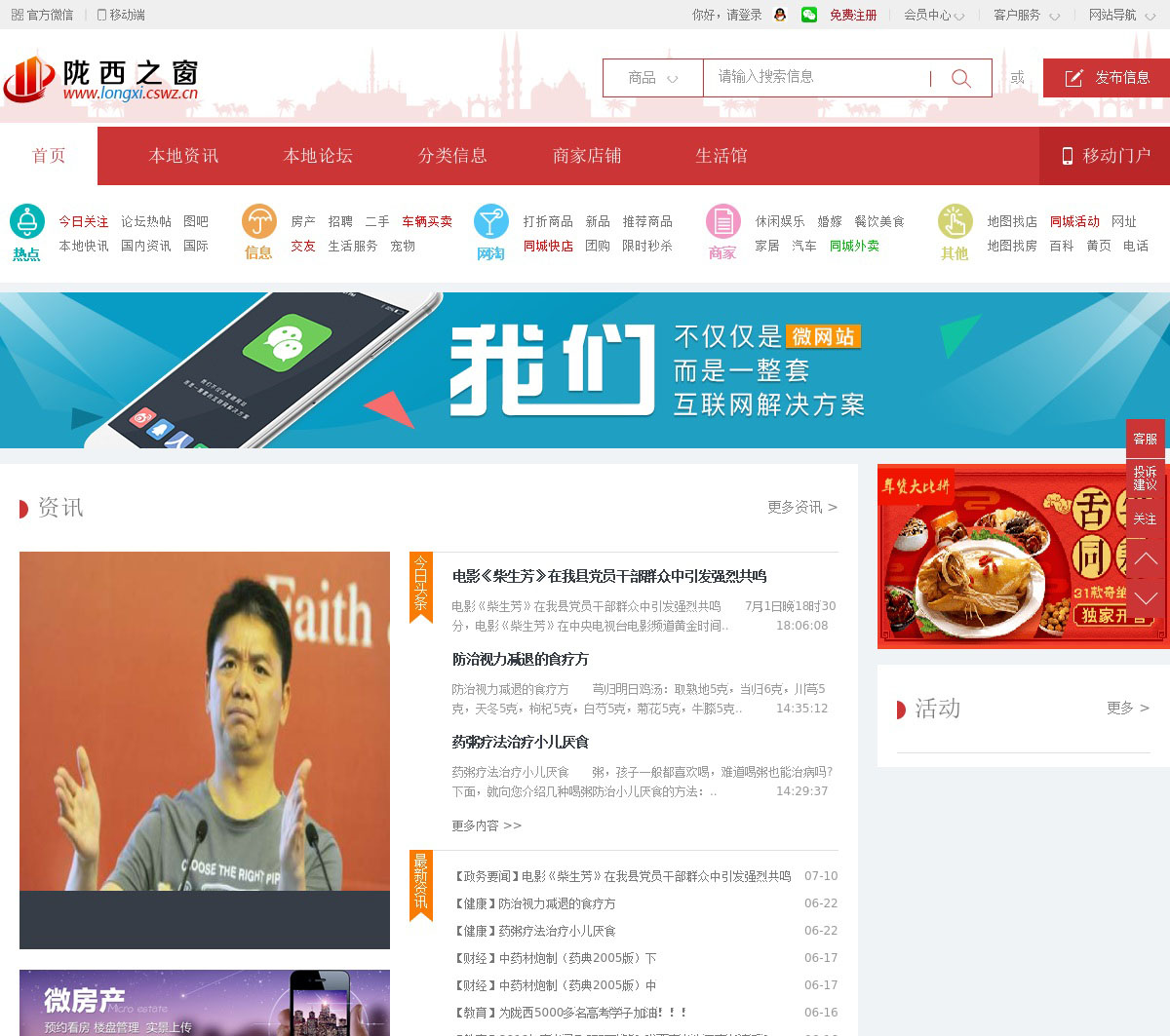 陇西之窗,陇西生活服务平台,电子商务服务平台,小程序,在线直播,VR全景,商家地图,商家导航,旅游,房产,住宿,娱乐,小吃,资讯,分类信息,论坛,红包圈广告,商品秒杀,商品团购等综合信息服务