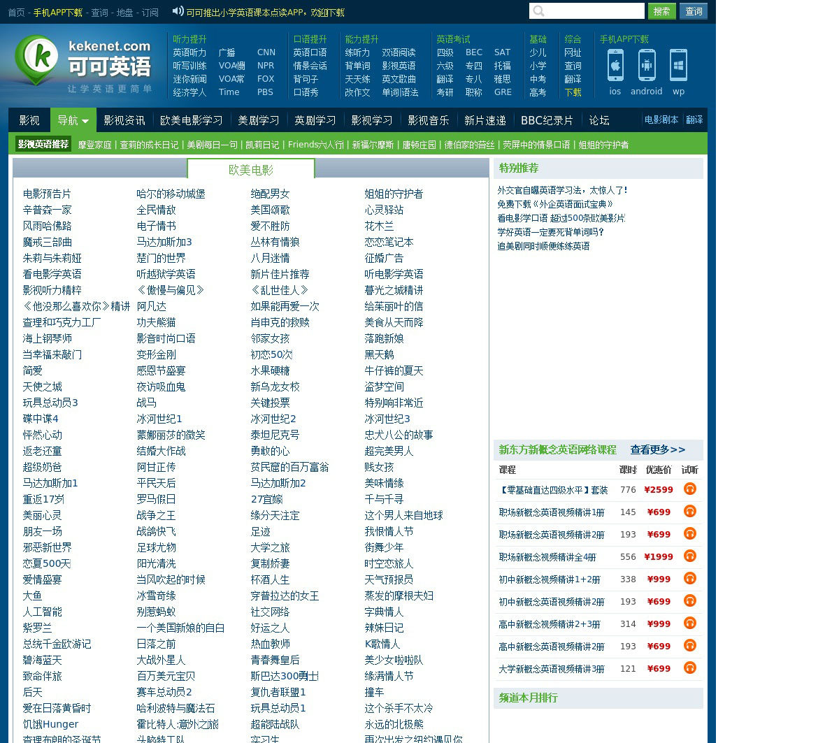 国内著名的免费英语学习网站,主要频道有VOA慢速英语,VOA常速英语,bbc英语听力,英语口语,英文歌曲,影视英语,新概念,四六级等英语考试,同时提供大量音频和课件下载